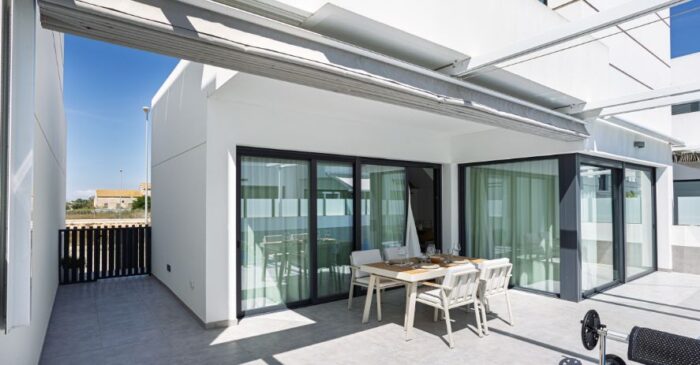 En supposant que vous préféreriez une porte-fenêtre pour parvenir aux mêmes dimensions qu’une baie coulissante à deux vantaux, elle doit compter quatre ouvrants. Ces derniers étant entourés d’un profilé, il en résulte des surfaces vitrées moins importantes et donc une perte de luminosité.