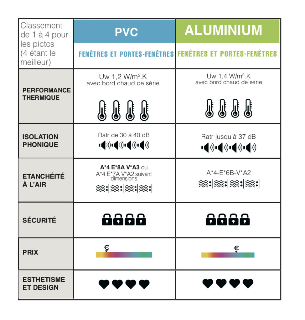 Enfin, en terme de coût, sur la base d’une menuiserie de 2,40 x 2 m, il faut compter un budget à partir de 2.200 € HT. Et cela aussi bien pour une baie coulissante en aluminium qu’une porte-fenêtre en PVC. Sauf que cette dernière bénéficie d’une performance thermique un peu plus élevée.