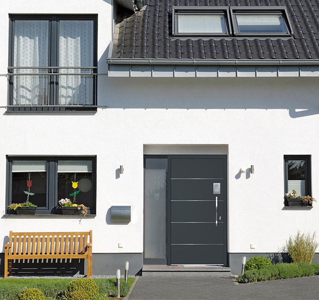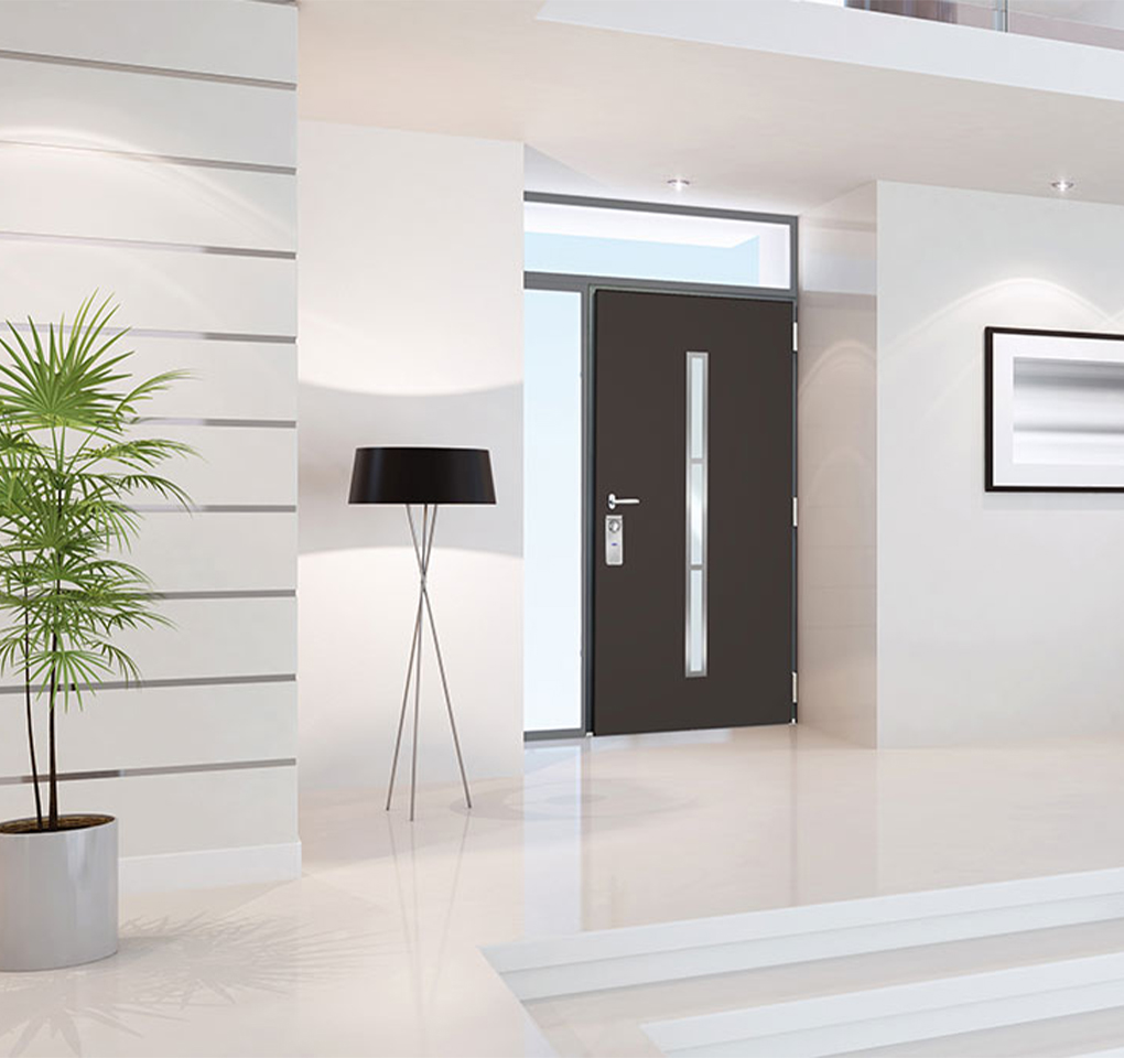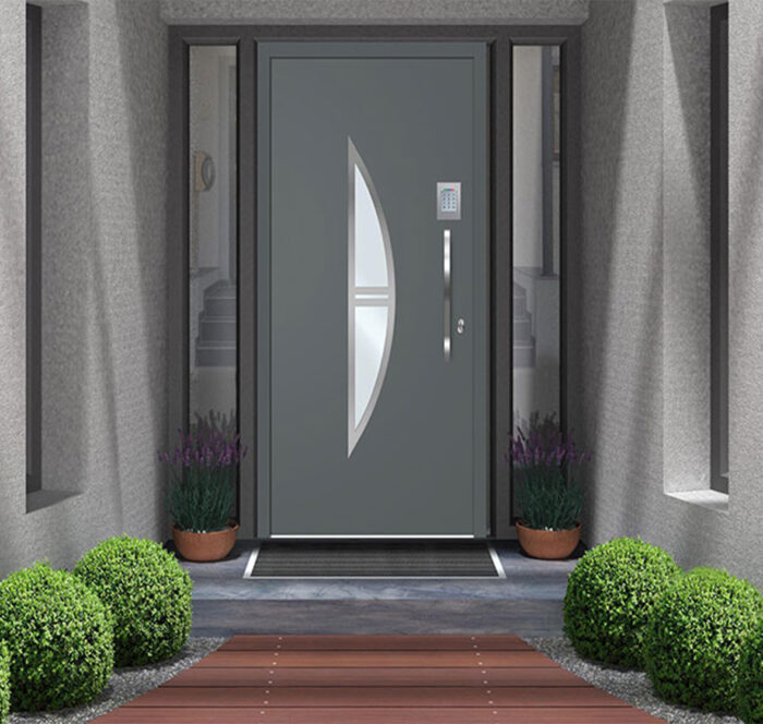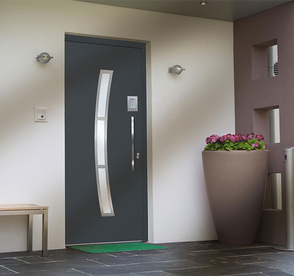 Bon à savoir : les portes aluminium monobloc Prestige peuvent être équipées, en option, d’une serrure motorisée électrique pilotée à l’aide d’un clavier à code ou d’un lecteur d’empreinte digitale.